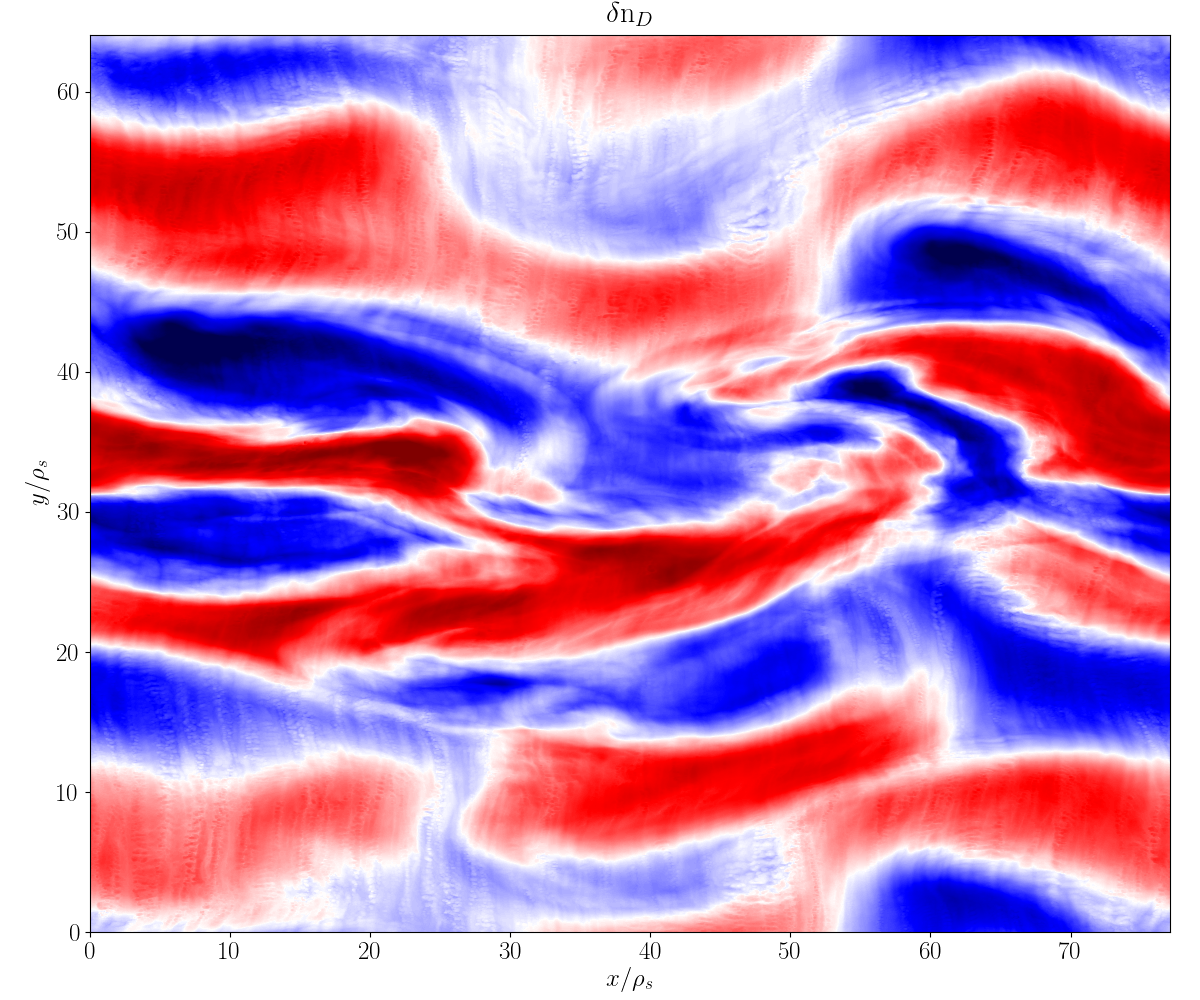 Over the past two decades, the fusion community has focused its modeling efforts primarily on the core region. A popular kinetic code used for this purpose was GYRO [CB10, CW03a, CW03b, CWD04]. Thousands of nonlinear simulations with GYRO have informed the fusion community’s understanding of core plasma turbulence [HHW+16, KWC05, KWC06, KWC07] and provided a transport database for the calibration of reduced transport models such as TGLF [SKW07]. GYRO was the first global electromagnetic solver, and pioneered the development of numerical algorithms for the GK equations with kinetic electrons. It is formulated in real space and like all global solvers requires ad hoc absorbing-layer boundary conditions when simulating cases with profile variation. This approach is suitable for core turbulence simulations, which cover a large radial region and are dominated by low wavenumbers.
