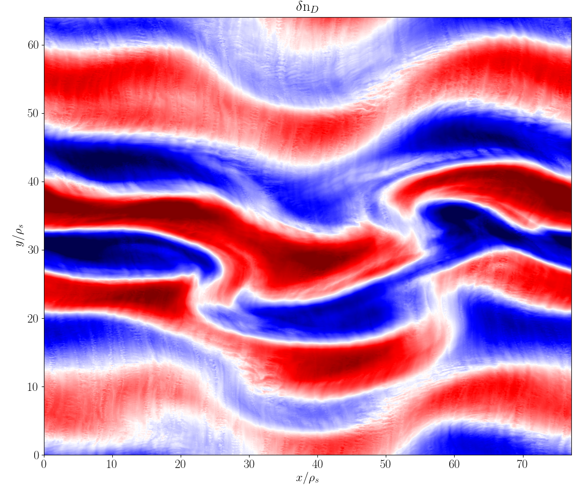 As the understanding of core transport has become increasingly complete, the cutting edge of research moved radially toward the pedestal region, where plasmas are characterized by larger collisionality and steeper pressure gradients that greatly modify the turbulent phenomena at play. This motivated the development, from scratch, of the CGYRO code [BC17, BC18, CBB16, CSB+19] to complement GYRO. CGYRO is an Eulerian GK solver specifically designed and optimized for collisional, electromagnetic, multiscale simulation. A key algorithmic aspect of CGYRO is the radially spectral formulation used to reduce the complicated integral gyroaveraging kernel into a multiplication in wavenumber space, but retaining the ability to treat profile variation important for edge plasmas [CB18, CBS20]. A new coordinate system that is more suitable for the highly collisional and shaped edge regime was adopted from the NEO code [BC08, BC12], which is the community standard for calculation of collisional transport in toroidal geometry.